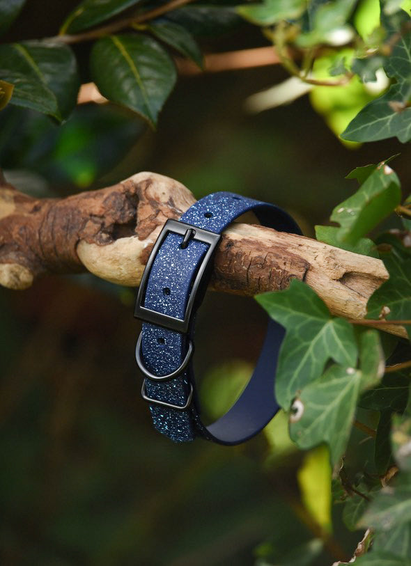 Part of our Speckled Star range, our Ocean Glass collar is crafted from Cosmos authentic Biothane webbing, and handpainted with Polar Ice stars.