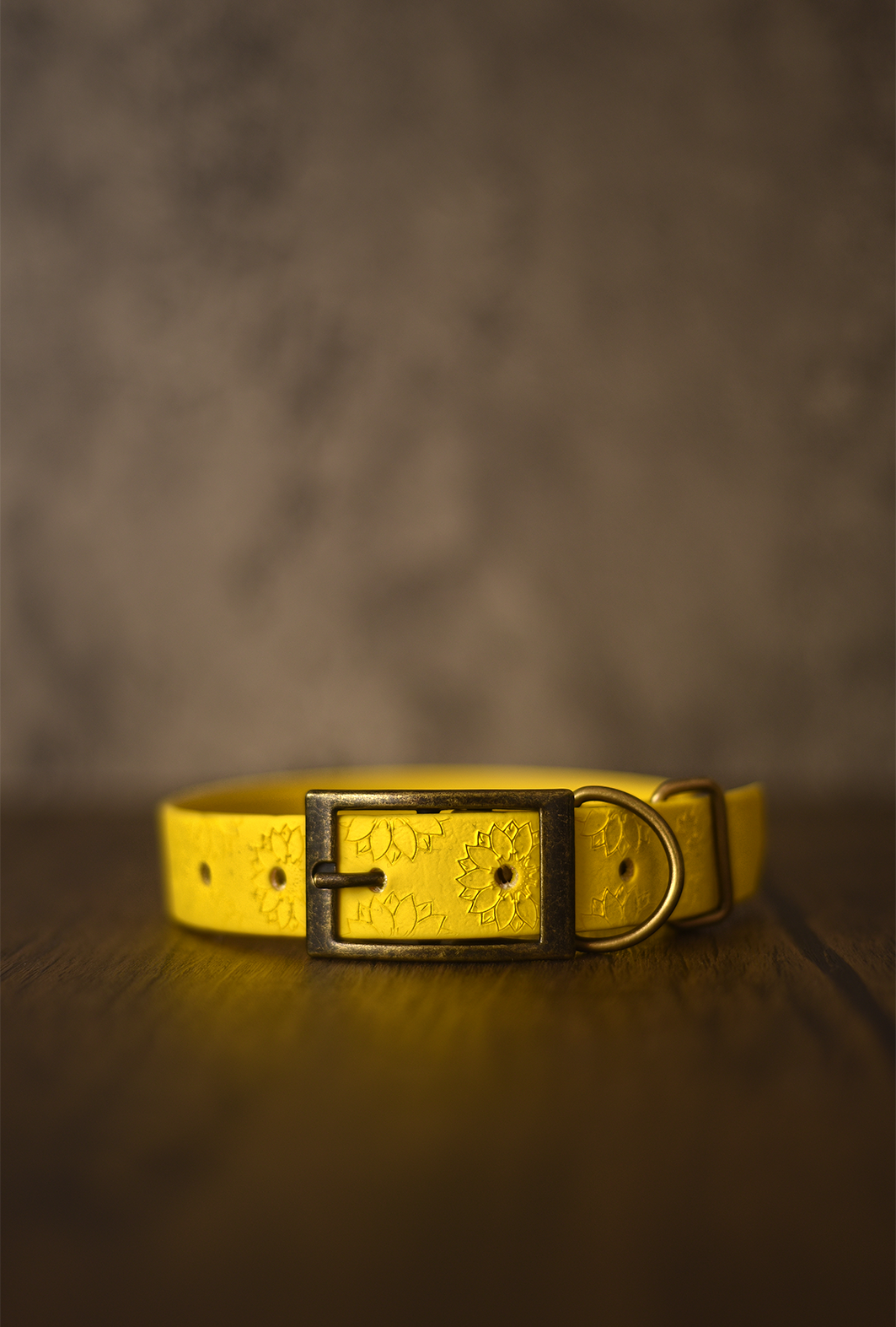 Sunflower Meadow is adorned with a beautiful sunflowers pattern and is crafted from our "Sunshine" Biothane.